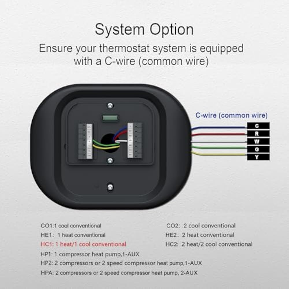 - 【Wide Compatibility】 This thermostat is compatible with various heating and cooling systems, including heat pumps and conventional multi-stage systems. Whether you're upgrading an existing system or installing a new one, this thermostat can adapt to meet your needs, providing reliable temperature control across different setups. Note: all system types require a common wire (C-Wire) for optimal performance.