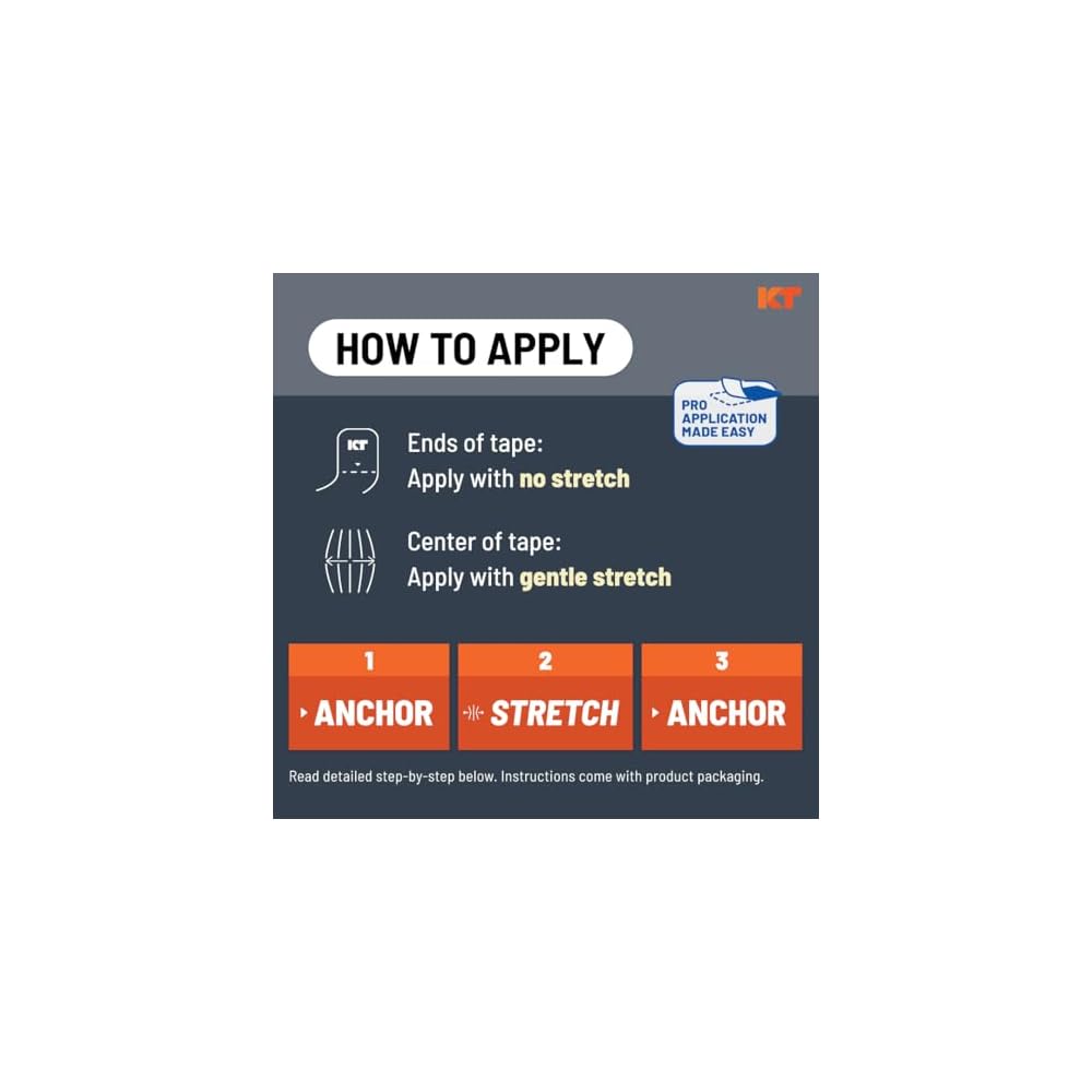 - Convenient Application: Easily self-apply KT Tape for back, knee and shoulder pain. Also for common ailments like sprains, aches, muscle weakness and more; Precut strips can also be cut into smaller widths or lengths when you need a more personalized fit.